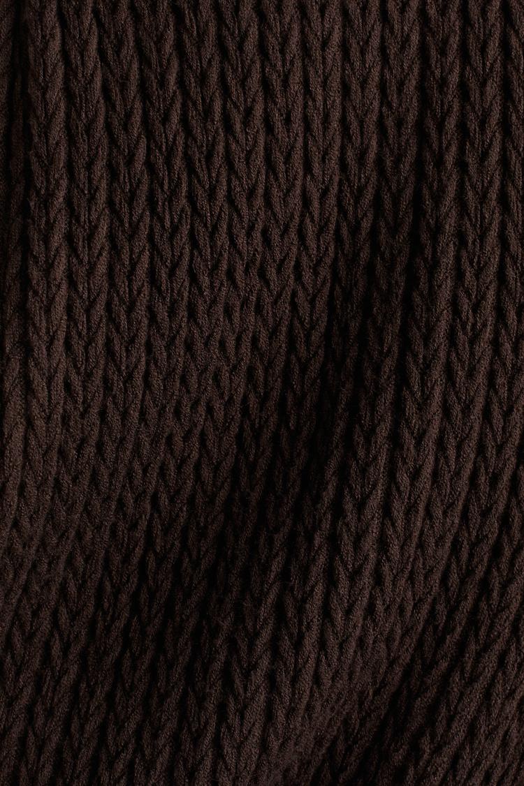 Cozy meets refined in these Flared Cable-Knit-Look Pants. Crafted from soft cotton jersey that mimics a cable-knit texture, they offer a high waist with an elasticized waistband and a full-length, flared leg that drapes beautifully. The deep black shade keeps the silhouette sleek and versatile, pairing easily with oversized knits, a crisp blouse, or a tailored blazer for a polished casual look. Ideal for autumn and winter days—from relaxed work-from-home outfits to weekend errands—the silhouette balances comfort with retro flair. Dress them up with heeled sandals or keep it laid-back with sneakers for day-to-night style. This foundational piece transitions through seasons, creating a chic, effortless mood for everyday wardrobes.