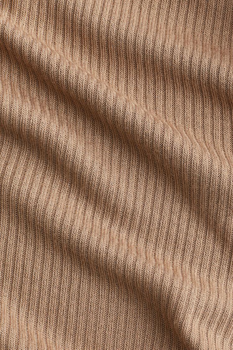 beige rib-knit flared pants with elastic waistband