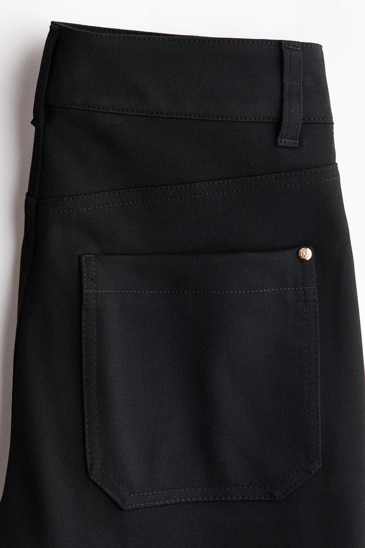 Redefine your everyday elegance with these flared twill pants, tailored in a sleek black hue that complements any top. Crafted from durable twill fabric, these full-length pants feature a mid-rise waist and a clean, flat-front waistband that ensures a smooth silhouette. The subtle flare from the knee down adds a touch of sophistication and movement, making them perfect for both workwear and casual outings. Practical pockets enhance their functionality, while the classic solid black color ensures versatility across seasons. Elevate your wardrobe with this timeless piece that balances modern chic with enduring style.