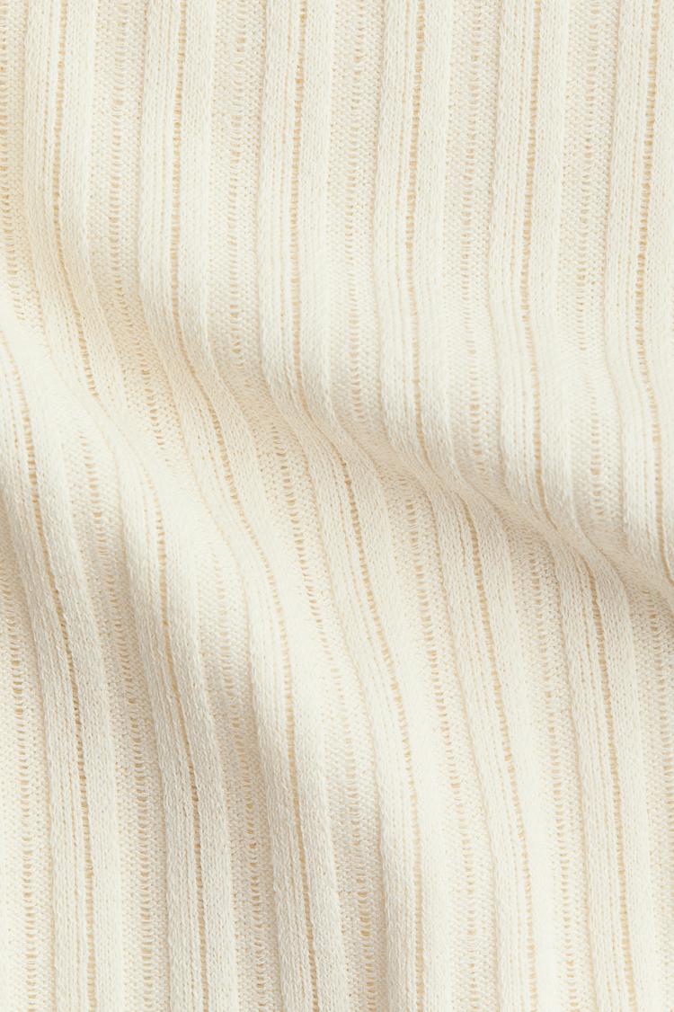Experience effortless comfort and understated elegance with these rib-knit pants in a soft off-white hue accented by subtle beige stripes. The mid-rise, elasticated waistband ensures a relaxed yet secure fit, while the straight-leg silhouette offers timeless versatility. Crafted from a stretchable knit fabric with a gentle rib-knit texture, these full-length pants are perfect for casual outings, loungewear, or everyday wear in spring through autumn. Their minimalist design and clean hemline make them an easy match for a variety of tops and shoes, bringing a cozy yet polished feel to your wardrobe staples.