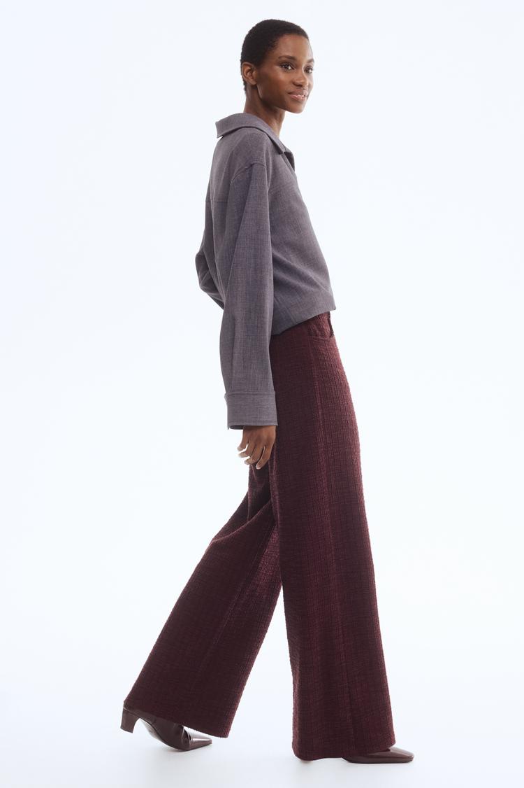 textured bouclé trousers for winter workwear