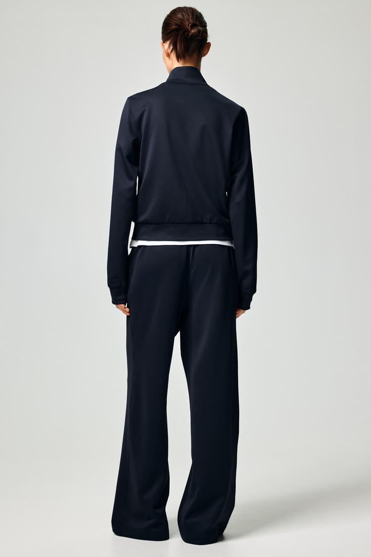Embrace effortless comfort and sleek style with these crease-front pull-on pants from H&M. Crafted from smooth black polyester fabric, they feature a relaxed wide-leg silhouette that flows gracefully to the floor, creating an elegant yet laid-back look. The regular waist rise with an elasticated waistband ensures a comfortable fit, while the clean hemline maintains a polished finish. Perfect for casual outings, travel, or everyday wear, these pants blend minimalist design with modern ease, making them a versatile staple for your wardrobe. Elevate your casual ensembles with this refined and cozy piece.