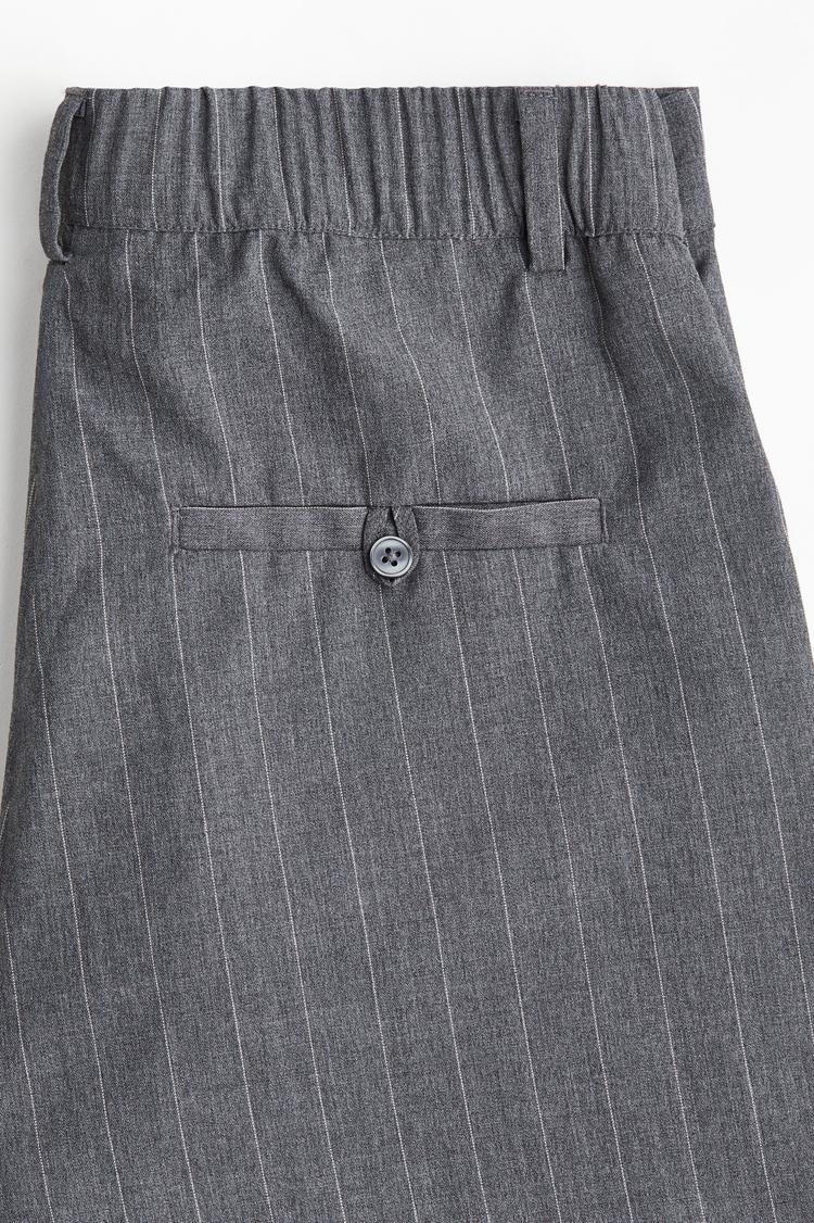 Refine your professional wardrobe with these sophisticated high-rise dress pants crafted in a classic wool fabric. Featuring a relaxed wide-leg silhouette and subtle pinstripes throughout, these pants combine timeless style with modern comfort. The elasticated waistband ensures a comfortable, pull-on fit, while clean hemlines and functional pockets add to their polished appeal. Perfect for business casual settings, conferences, or elegant workwear ensembles, these versatile trousers effortlessly elevate your look with understated elegance and a tailored edge.