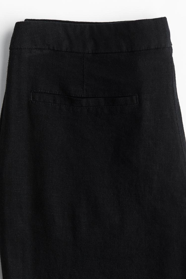 Pants in an airy, woven linen and viscose blend. Regular waist, zip fly with button, diagonal side pockets, and mock welt back pockets. Flared hems.