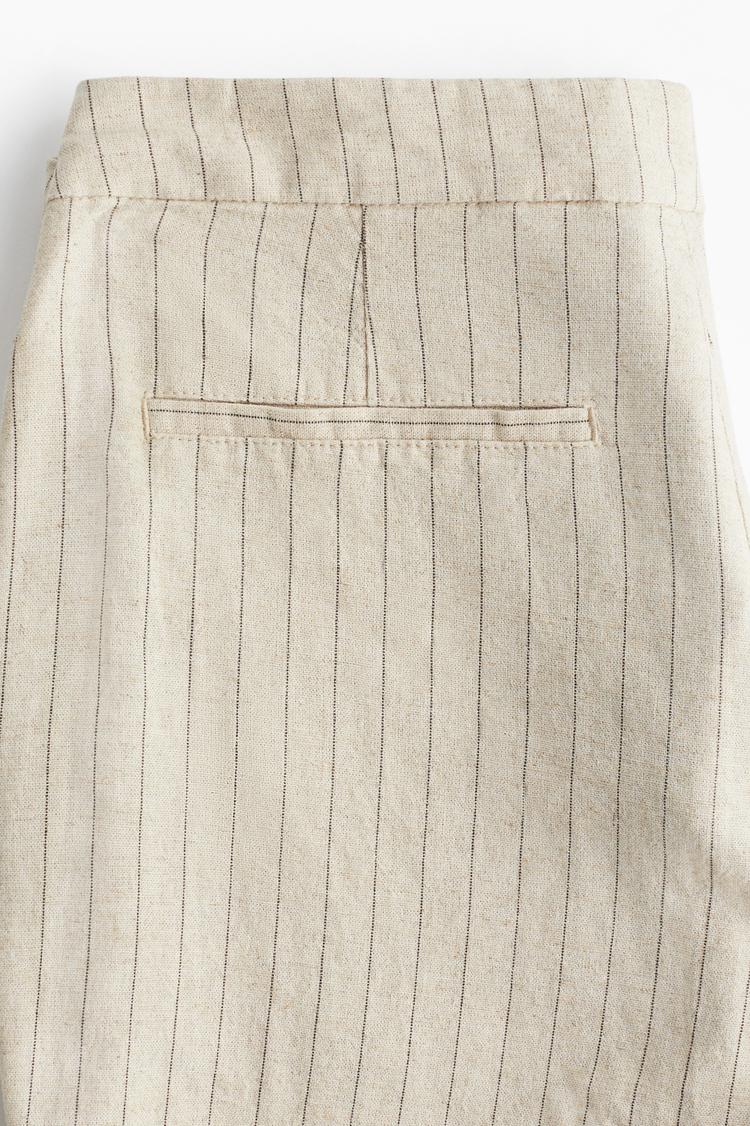 Effortless elegance meets breathable ease in these linen-blend dress pants. Crafted from a light linen-viscose weave, they drape with a soft, airy fall and keep you cool through warm days. A regular waist with a discreet zip fly and button closure creates a clean, tailored silhouette, while diagonal side pockets and mock welt back pockets add practical polish. The wide-leg, flared hems elongate the frame and pair beautifully with everything from fitted tops to silky blouses. Ideal for office days, brunches, or travel, these pants offer refined texture, versatile chic, and timeless simplicity.