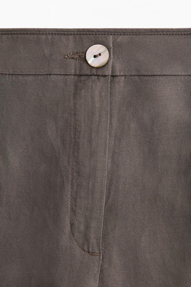 Tailored pants in an airy, woven linen and viscose blend. High waist, zip fly with pearlescent button, and darts at front and back. Wide legs.
