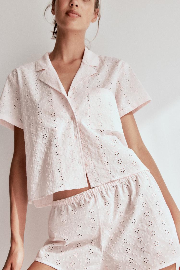 PAJAMAS WITH EYELET EMBROIDERY