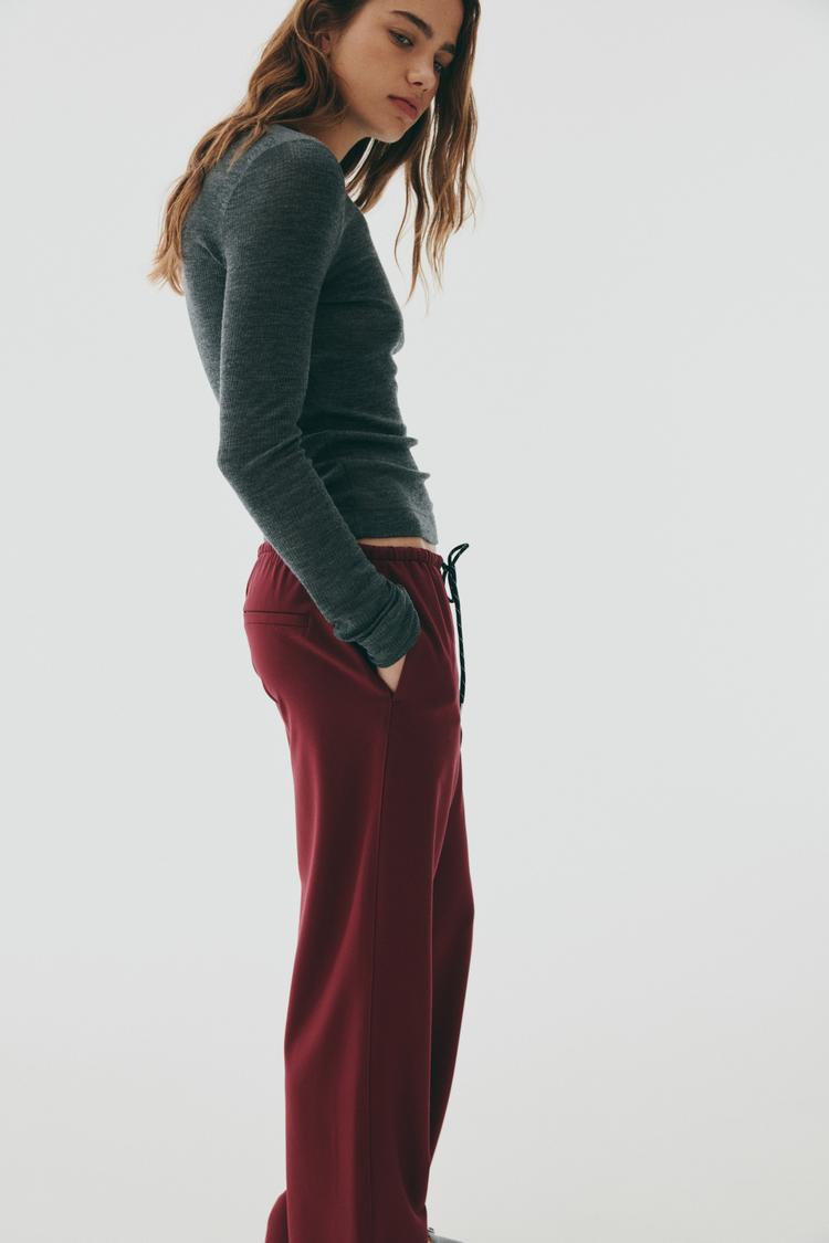 mid-rise pants with elastic waistband