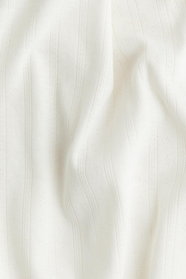 Effortless white elegance meets weekend ease in these Pointelle Jersey Pants. The soft, breathable jersey drapes into a relaxed wide-leg silhouette with a fitted upper for shaping. A low-rise waist sits comfortably at the hips, finished with a delicate picot-trim waistband and a tiny satin bow for a feminine touch. The solid ivory hue makes them endlessly versatile—pair with a breezy blouse for brunch, a lightweight blazer for meetings, or a simple tee for off-duty days. Designed for all-day comfort, this pant adds understated luxe to any casual look.
