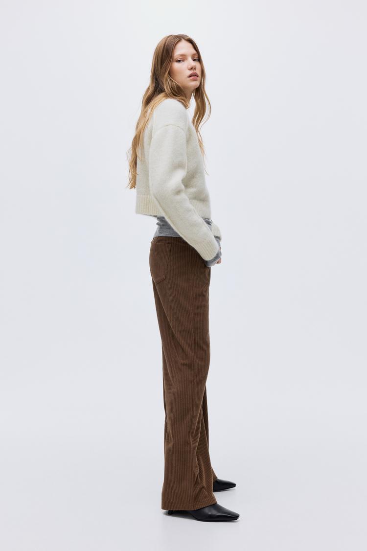 Wrap yourself in cozy sophistication with these ribbed velour pants, designed to elevate your casual wardrobe. The rich brown hues and subtle vertical stripes create a timeless look, while the soft-touch velour fabric offers plush comfort and warmth. Featuring a mid-rise flat-front waistband and straight-leg silhouette, these pants provide a flattering and relaxed fit that moves effortlessly with you. Perfect for autumn and winter days, they pair beautifully with knits and boots for an easy everyday style. Functional back and front pockets add practicality without compromising style, making these pants a versatile staple for laid-back yet polished ensembles.