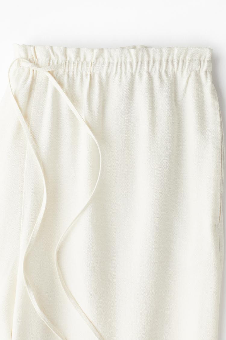 Embrace easy polish with these Straight Drawstring Pants in a soft ivory linen-cotton blend. The relaxed silhouette drapes with effortless ease, ending at ankle length for a modern, breathable fit. A soft elasticized waistband with a practical drawstring ensures a comfortable, adjustable rise, while discreet side pockets add everyday utility. The woven fabric breathes in warm weather, keeping you cool from desk to sunset. Pair with a crisp white blouse and sandals for a chic office-to-weekend look, or throw on a relaxed tee for weekend lounging. Clean, versatile, and quietly refined—these pants redefine everyday ease.