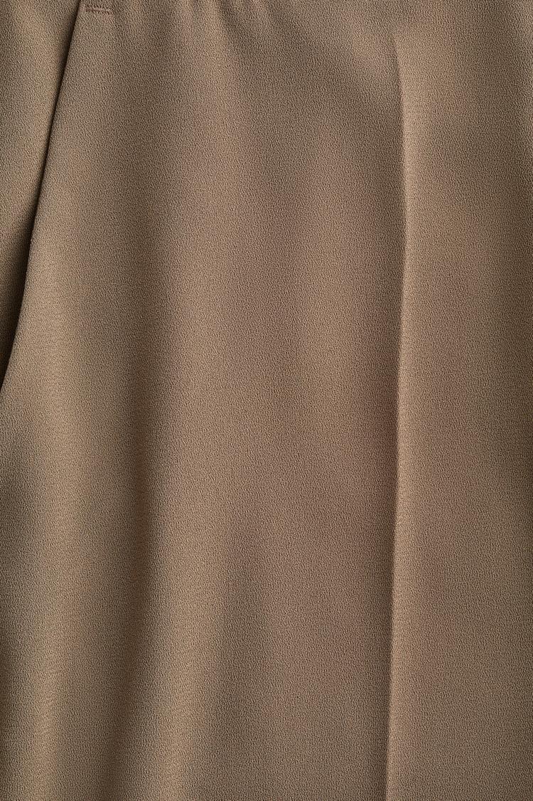 Embrace timeless elegance with these straight-leg creased pants in a sophisticated taupe hue. Crafted from soft-touch crepe fabric, they offer a comfortable, wrinkle-resistant finish that keeps you looking polished throughout your day. The mid-rise waist and flat-front waistband create a sleek silhouette, while the full-length legs elongate your frame gracefully. Ideal for casual outings, workdays, or business casual settings, these pants effortlessly blend classic style with modern minimalism. Pair them with a blazer or a chic blouse to complete a versatile and refined look that transitions seamlessly from office to evening.