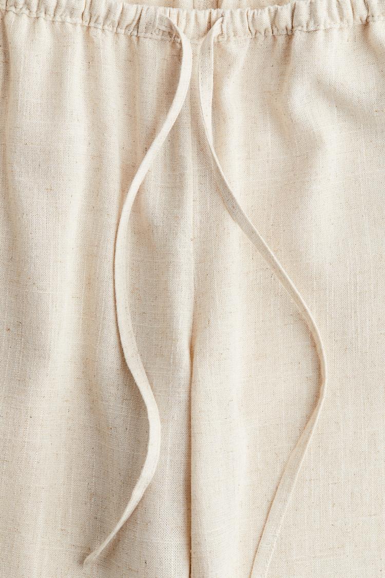 Slip into these airy linen straight-leg pants for a relaxed, effortlessly chic look. The low-rise waist sits softly on the hips, secured by a drawstring and a covered elastic waistband for all-day comfort. In a creamy beige weave, the breathable linen fabric drapes into a comfortable regular fit with a full length silhouette. Diagonal side pockets bring practical ease, while the clean hem keeps the line streamlined. Perfect for warm-weather days, they pair easily with a crisp blouse and sandals for vacation, brunch, or casual office outfits. A versatile staple with modern ease.
