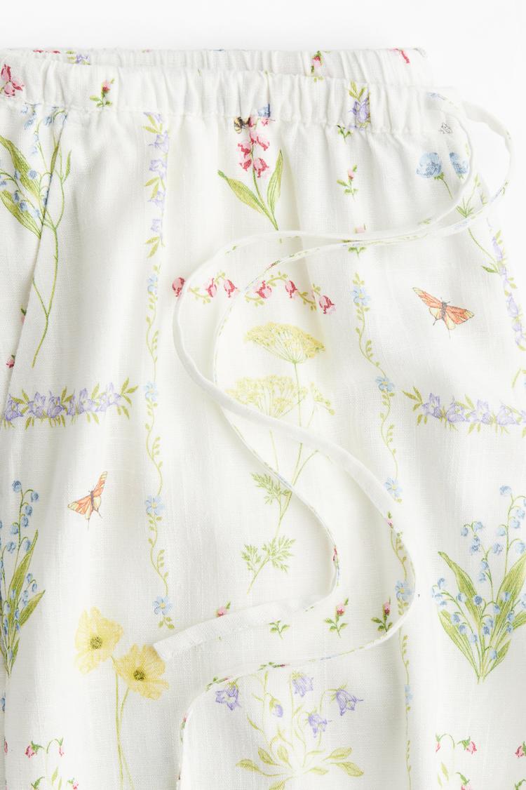 Effortless, sun-ready linen trousers that move with you. These Straight-Leg Drawstring Pants are cut in a breezy, airy linen weave with a low-rise waist hugged by a hidden elastic band and a practical drawstring for a custom fit. The all-over floral print in soft greens, pinks, yellows, and blues sits on a crisp off-white base, while diagonal side pockets add everyday utility. With a clean hem and straight silhouette, they pair perfectly with a simple tee or a light denim jacket for brunch, vacation getaways, or weekend errands—comfort, polish, and easy charm in one versatile piece.