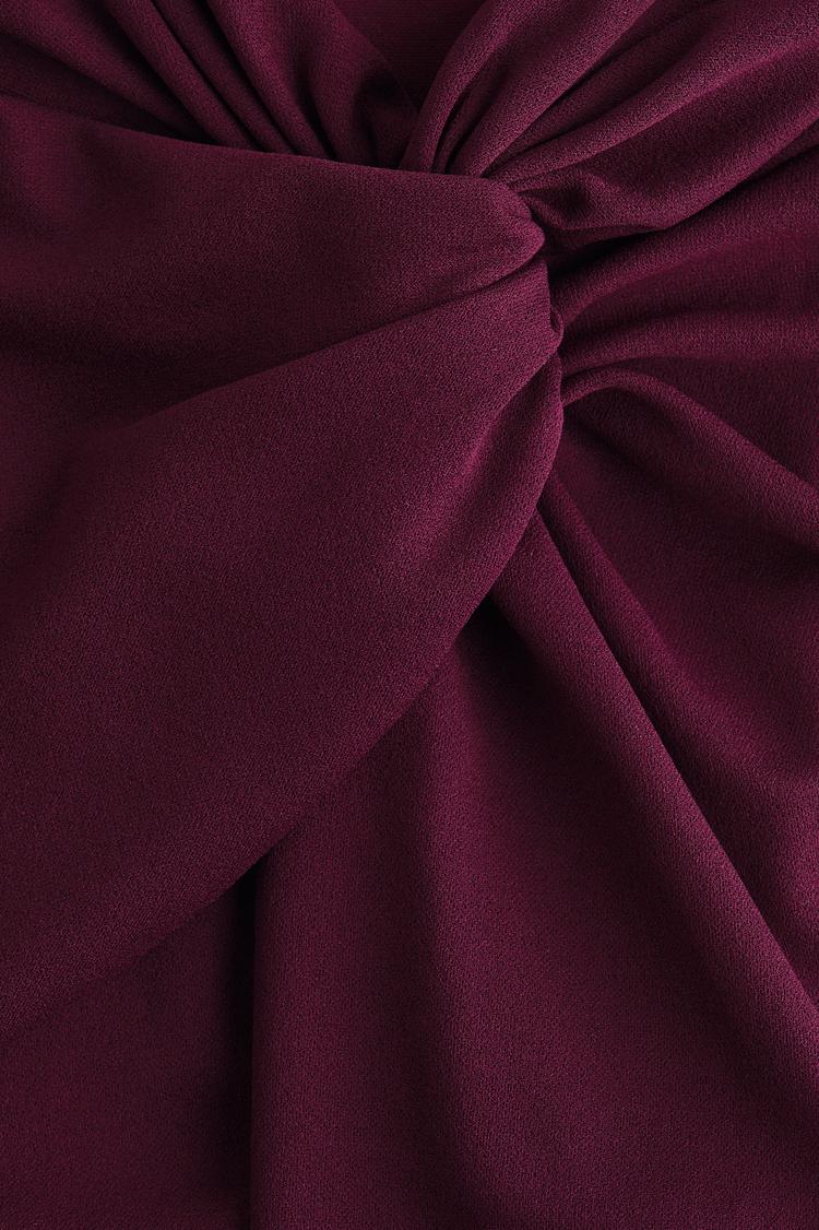 Embrace refined elegance with these Dark Burgundy twisted-detail pants crafted from soft crepe fabric. Featuring a high waist and a wide-leg silhouette, these pants offer a relaxed yet polished fit that drapes effortlessly. The front twist and ruched detailing add an artistic touch, making them a standout piece for casual outings, brunch dates, or everyday wear during cooler seasons. Pair them with sleek tops or layered knits to elevate your wardrobe with minimalist sophistication and comfortable style.