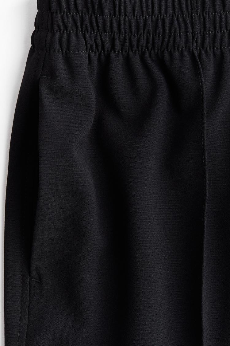 Refined yet effortless, these Wide Crease-Detail Pants from H&M redefine smart casual. Crafted in a cotton-poly twill, they sit high at the waist with a soft elastic waistband for all‑day comfort. A mock fly nods to classic tailoring, while discreet side pockets keep essentials within reach. Front and back pressed creases sculpt a clean, elongated silhouette that falls into wide legs with graceful drape. Dress them up with a silky blouse and blazer for office days, or pair with a knit for weekend dinners. A versatile staple that moves with you from desk to dinner.