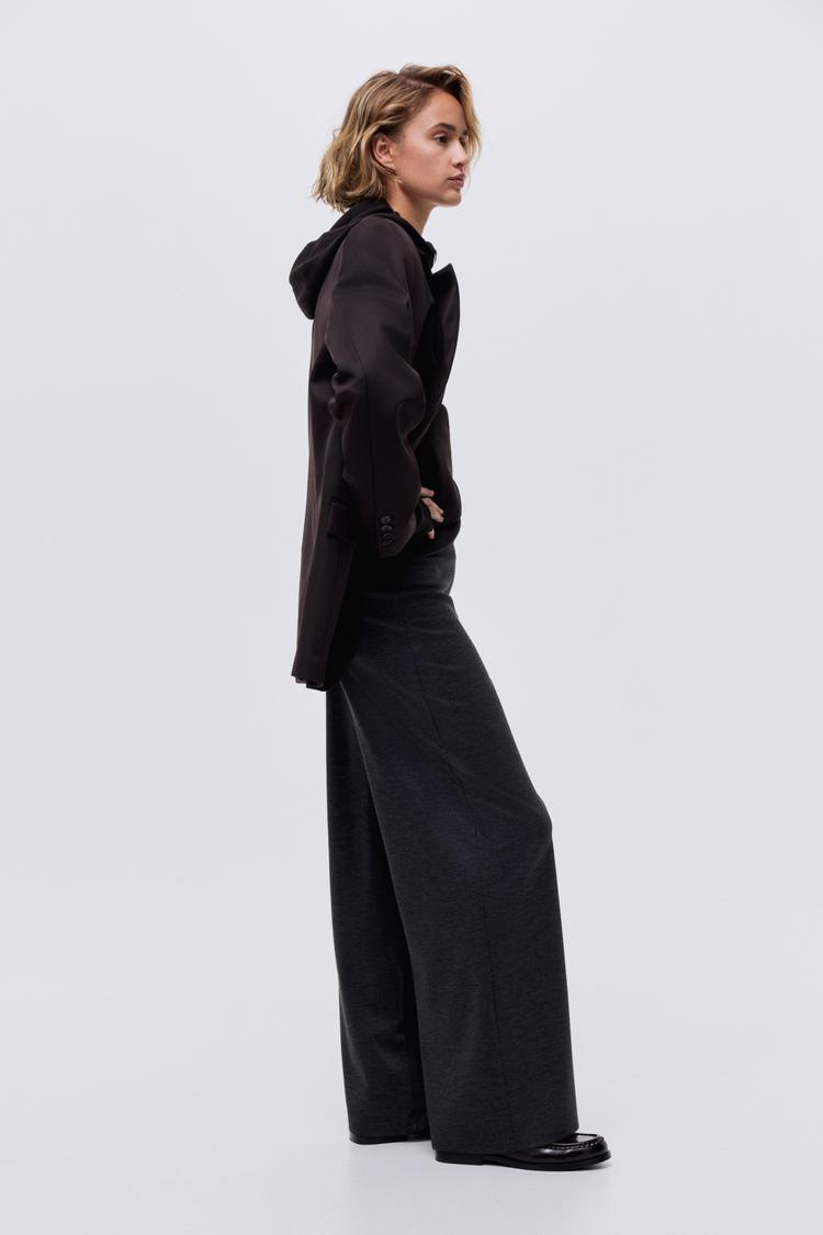Discover effortless comfort and timeless style with these wide-leg jersey pants. Crafted from soft, stretchable black jersey fabric, they offer a relaxed loose fit that drapes elegantly to a full length hem with a clean finish. The mid-rise elasticated waistband ensures all-day ease and a flattering silhouette perfect for casual outings or workwear. These versatile pants embody minimalist chic, pairing seamlessly with hoodies or blouses for an understated yet polished look. Ideal for those who value both comfort and style, they are your go-to piece for everyday wear through all seasons.