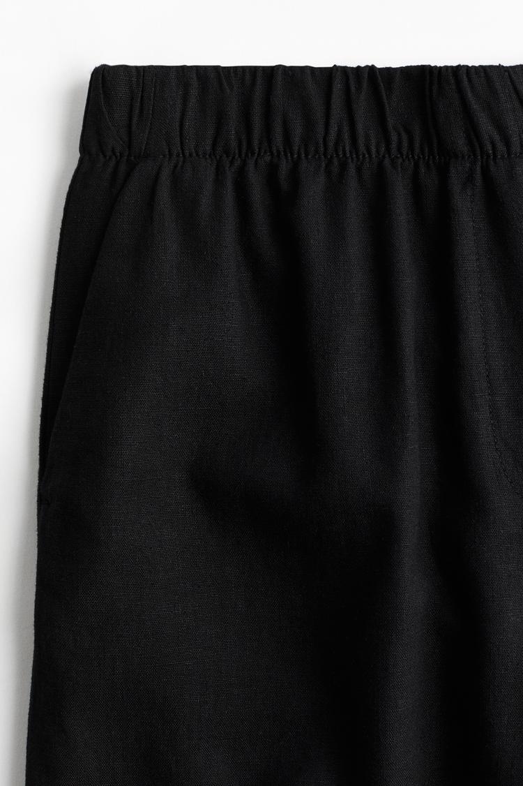 Loose-fit pants in an airy, woven linen and viscose blend. High waist, elasticized waistband, and mock fly. Diagonal side pockets, mock welt back pockets, and wide legs.