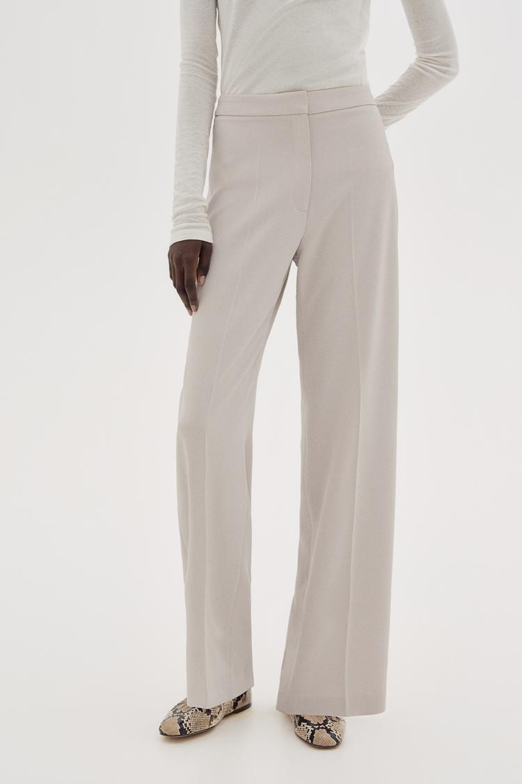 Pants in woven fabric. High waist and zip fly with concealed hook-and-eye fastener. Straight, wide legs with creases.