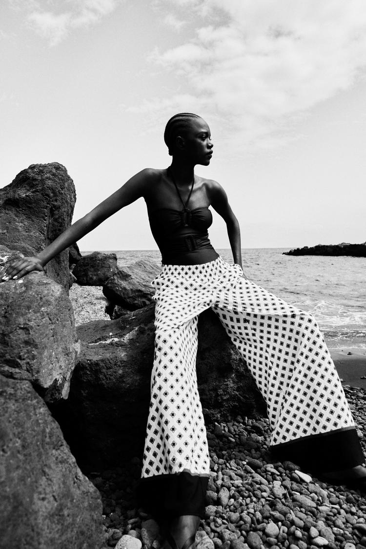 Effortless chic meets quiet-luxury in these Wide-Leg Pull-On Pants. Crafted in crisp cotton with a graphic diamond print on a cream base, they sit at the high waist with an elasticized waistband for easy on-and-off. The generous wide legs drape to a neat cuff, creating a relaxed yet refined silhouette that moves with you—from coffee runs to weekend dinners. Pair with a tucked-in blouse or a breezy knit for versatile everyday dressing. Breathable cotton, bold geometric pattern, and a pull-on fit make these pants a go-to staple for warm-weather looks.