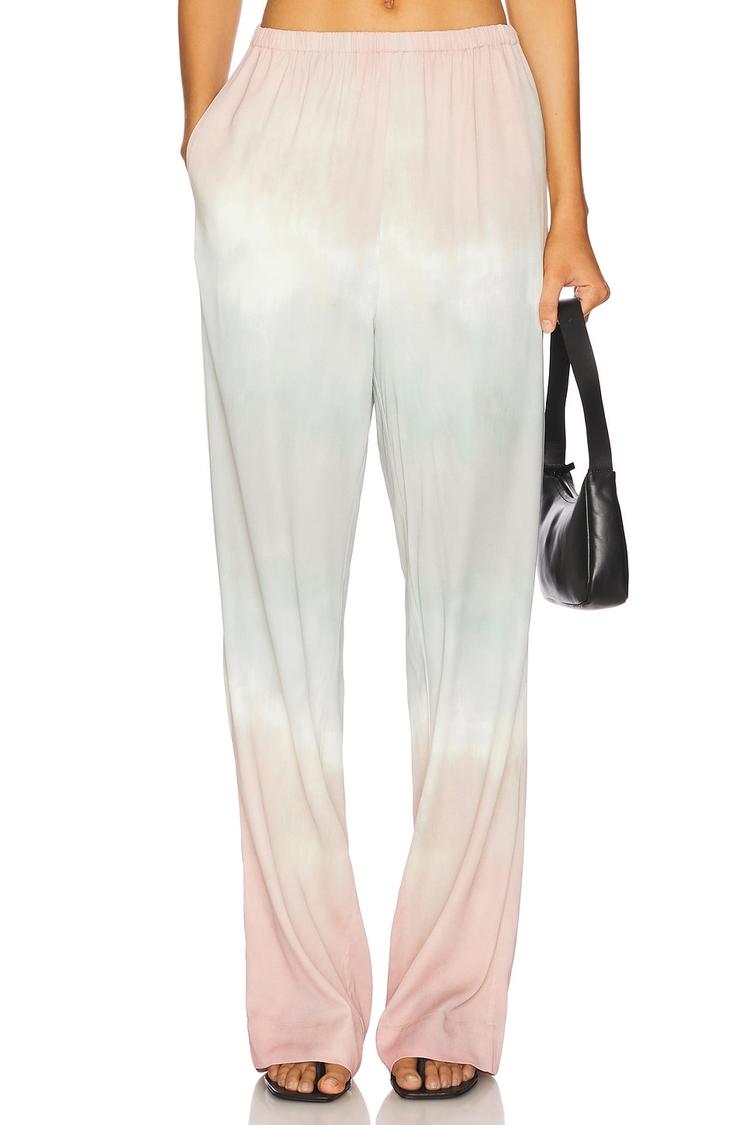 Embrace relaxed elegance with these wide-leg Lunch Pants by H2O Fagerholt, crafted from a lightweight, stretchable crepe fabric blend of viscose and elastane. Featuring a soft elasticated waistband and pull-on styling, they offer effortless comfort, while side seam pockets add practical flair. The subtle tie-dye pattern in gentle shades of light pink, white, and gray creates a minimalist yet stylish look. Perfect for casual outings, loungewear, or travel, these full-length trousers flow gracefully to the floor, making movement easy and chic. A versatile staple for warm seasons, these pants balance comfort and modern casual charm beautifully.