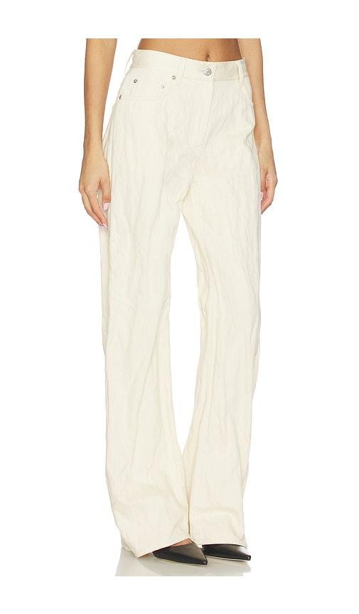 HELMUT LANG CRUSHED RELAXED BOOTCUT PANT IN CREAM.