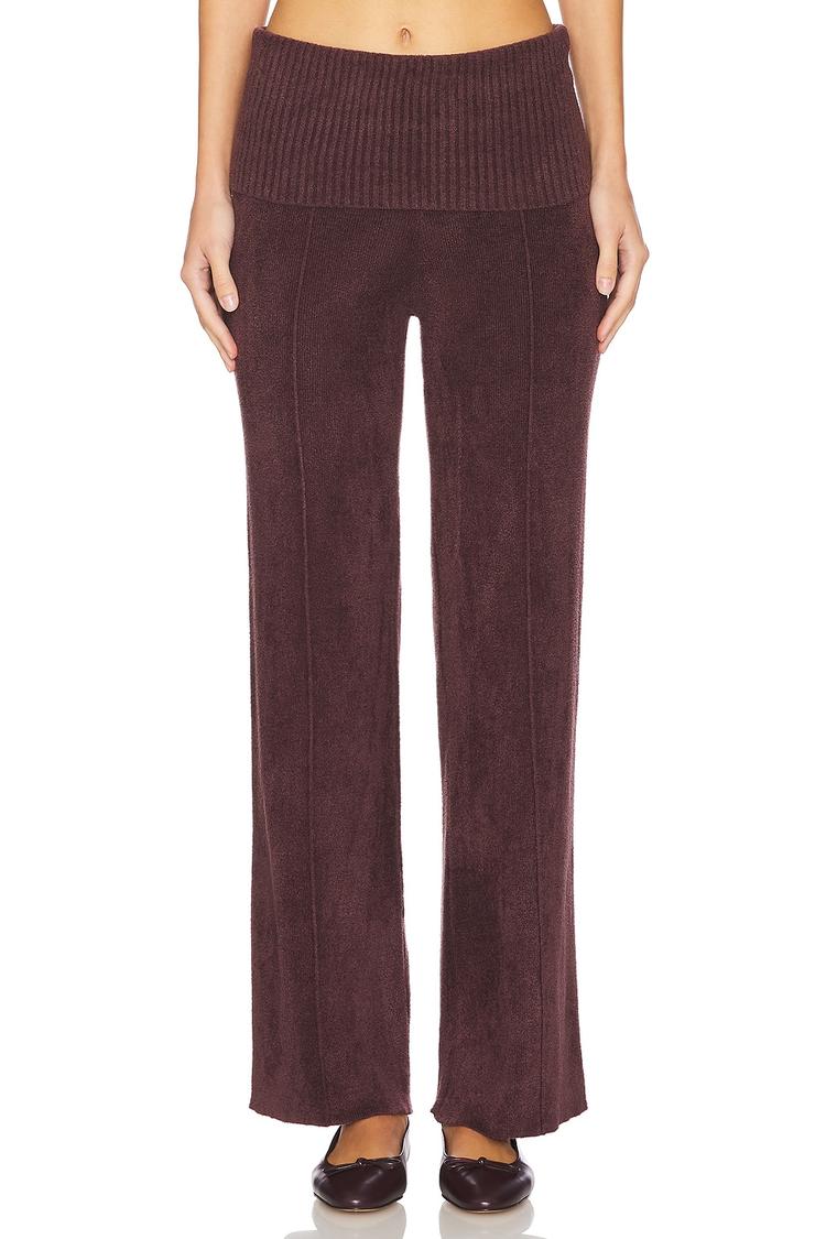 Effortless luxury meets everyday ease in this burgundy velour lounge pant. A pull-on silhouette with a wide, fold-over waistband creates a flattering high-rise feel while staying supremely comfortable. The leg falls into a fluid Palazzo shape, giving you a plush, relaxed drape that moves with you. Crafted in a soft-viscose blend with a touch of nylon and elastane for stretch, it’s midweight and cozy—perfect for lazy weekends, relaxed home-office days, or casual errands. Pair with a simple knit or a satin blouse for a chic, laid-back look that feels as good as it looks. MACHINE WASH, easy care, endless versatility.