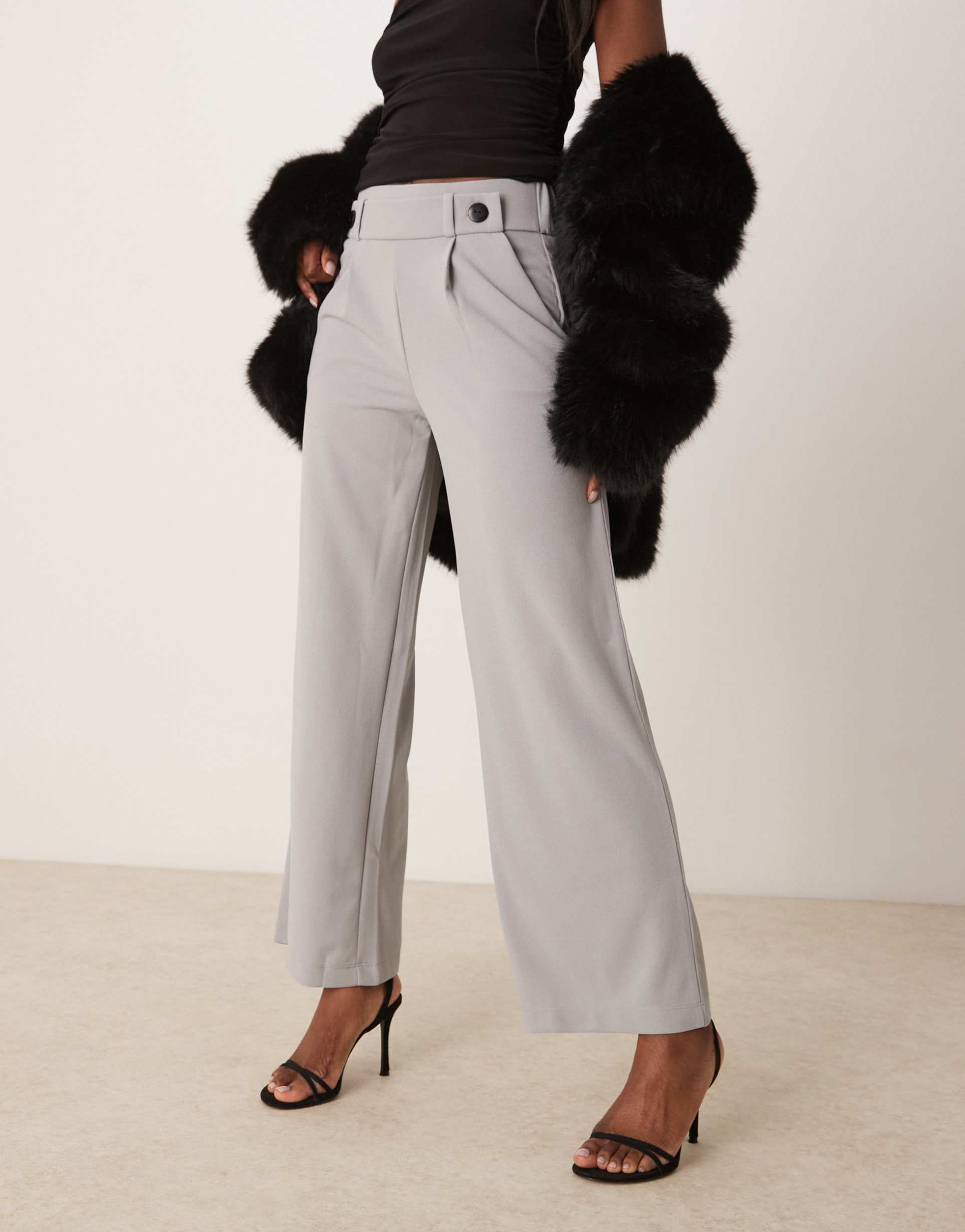 classic wide leg pants in light gray