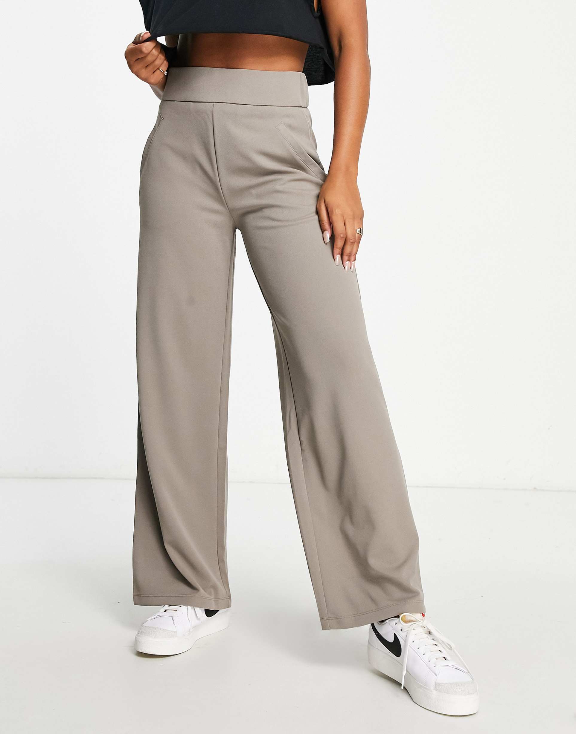 JDY WIDE LEG TAILORED PANTS IN MUSHROOM