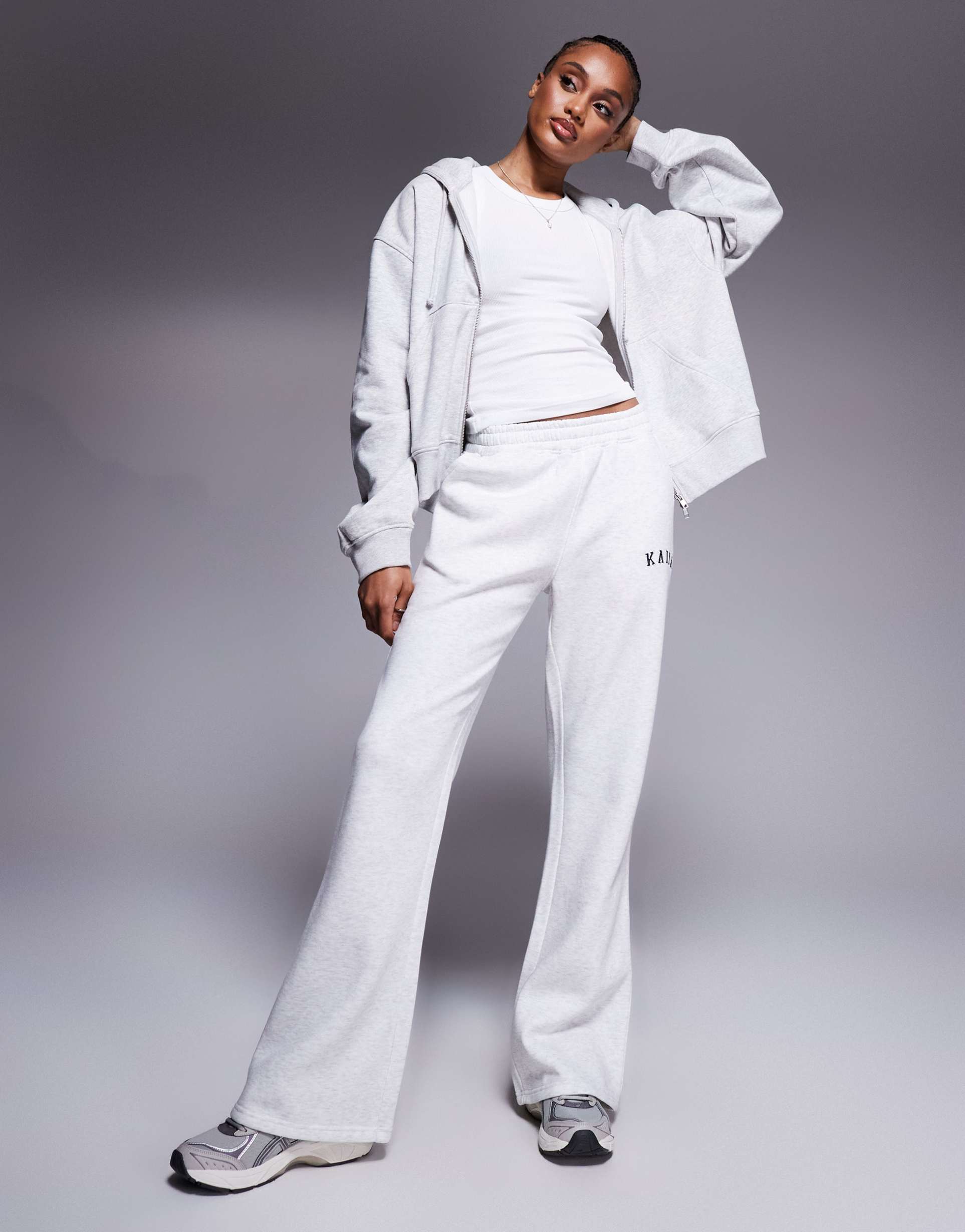 KAIIA TALL EMBROIDERED LOGO WIDE LEG SWEATPANTS IN LIGHT GRAY