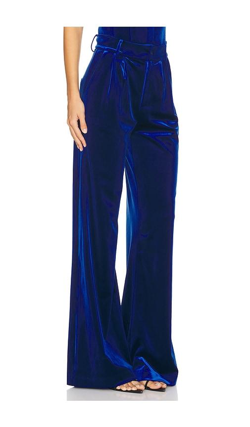 KARINA GRIMALDI XIMENA VELVET PANTS IN BLUE.