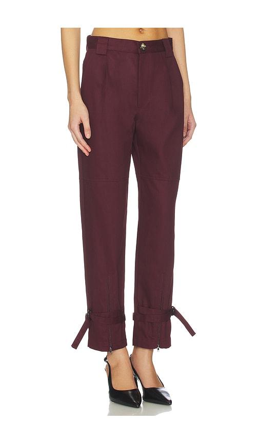 KIMBERLY TAYLOR TOM UTILITY PANT IN BURGUNDY.