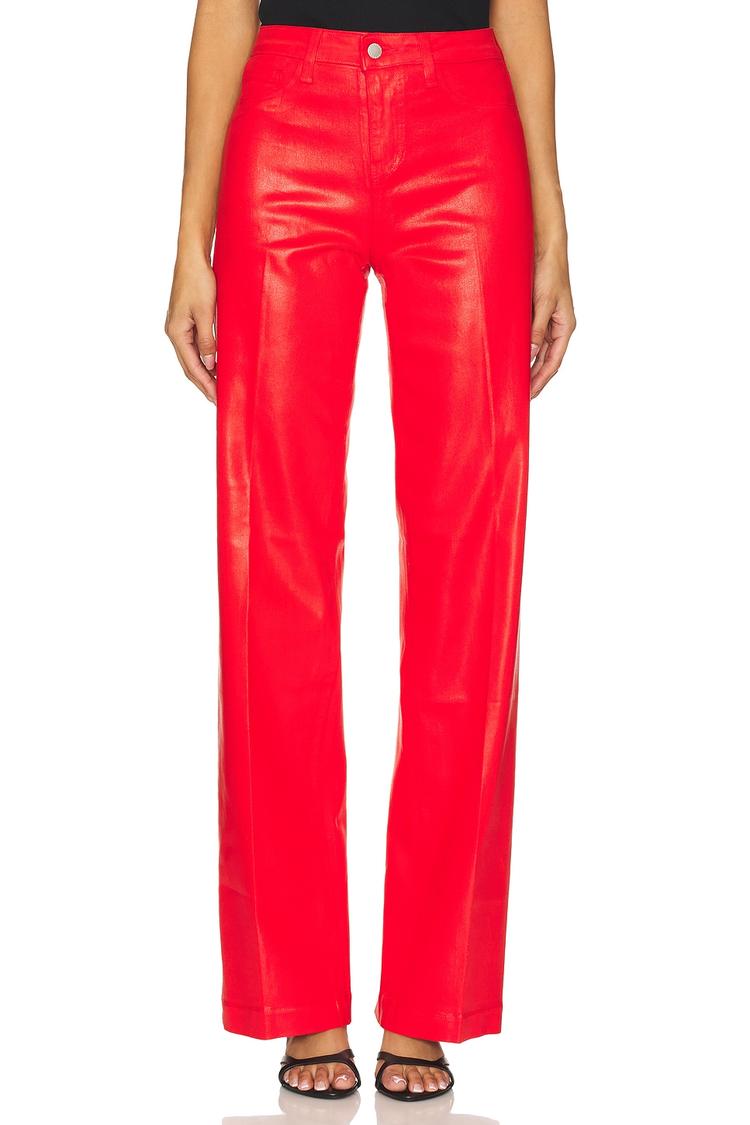 Elevate your everyday with these Clayton High Rise Wide Leg Coated Jeans in a bold cherry red. The glossy coated finish catches light as the silhouette skims from a snug high-rise to a fluid, wide leg. A clean zip fly with a metal button secures the look, while a minimalist 3-pocket design keeps it streamlined. Crafted from a cotton-rich weave with stretch for ease, they move from office-to-evening with effortless polish. Pair with a sleek tee or blazer for a modern, fearless statement that transitions from day to night with confidence.