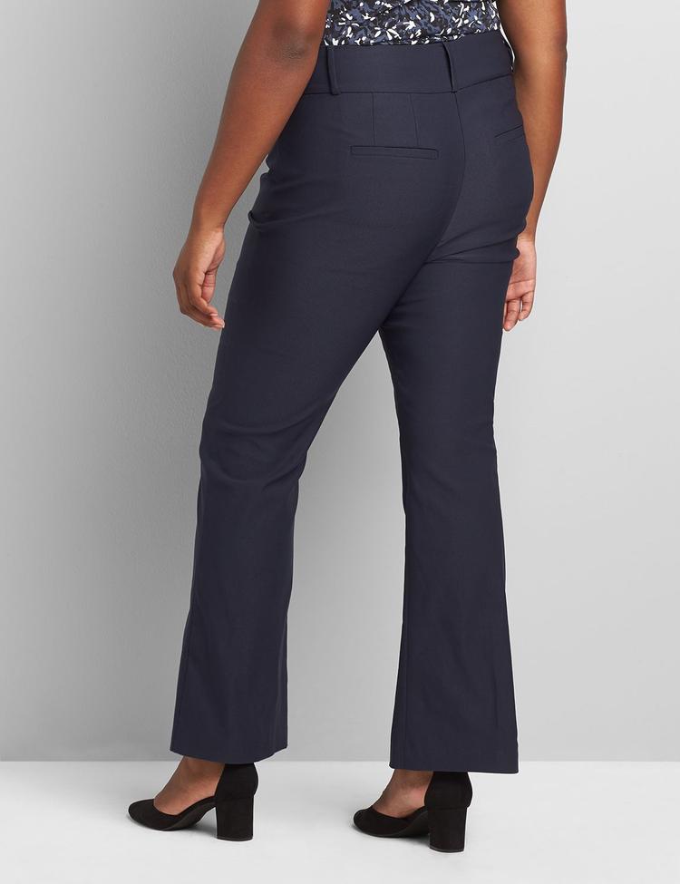 Boost your silhouette with Lane Bryant's 4-Season Tighter Tummy High-Rise Boot Pant in Night Sky. These navy bootcut pants are cut from Sexy Stretch fabric with excellent recovery to hug curves from waist to knee and flare softly at the hem. A contoured elastic waistband prevents gaping while a zip fly with a double-button closure delivers polished, secure fit. Equipped with practical pockets, they transition seamlessly from office to after-hours, pairing beautifully with heels or flats. Built for year-round wear, this versatile Night Sky shade adds timeless polish to any wardrobe.