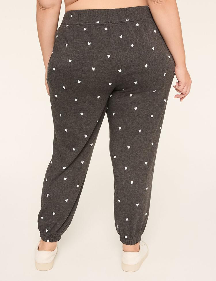 Experience the perfect blend of comfort and casual style with these Plus Size LIVI French Terry Joggers by Lane Bryant. Crafted from ultra-cozy French terry fabric, they offer a soft touch with breathable ease, ideal for lounging, workouts, or everyday wear. Featuring a relaxed fit that tapers into gathered cuffed ankles, these joggers sit comfortably at a mid-rise waist with a covered elastic waistband for a secure yet flexible feel. Designed with practical side pockets and a versatile solid heather grey color accented by subtle white heart prints, they bring effortless style to your casual wardrobe. Perfect for all seasons, these joggers promise both comfort and chic versatility wherever your day takes you.