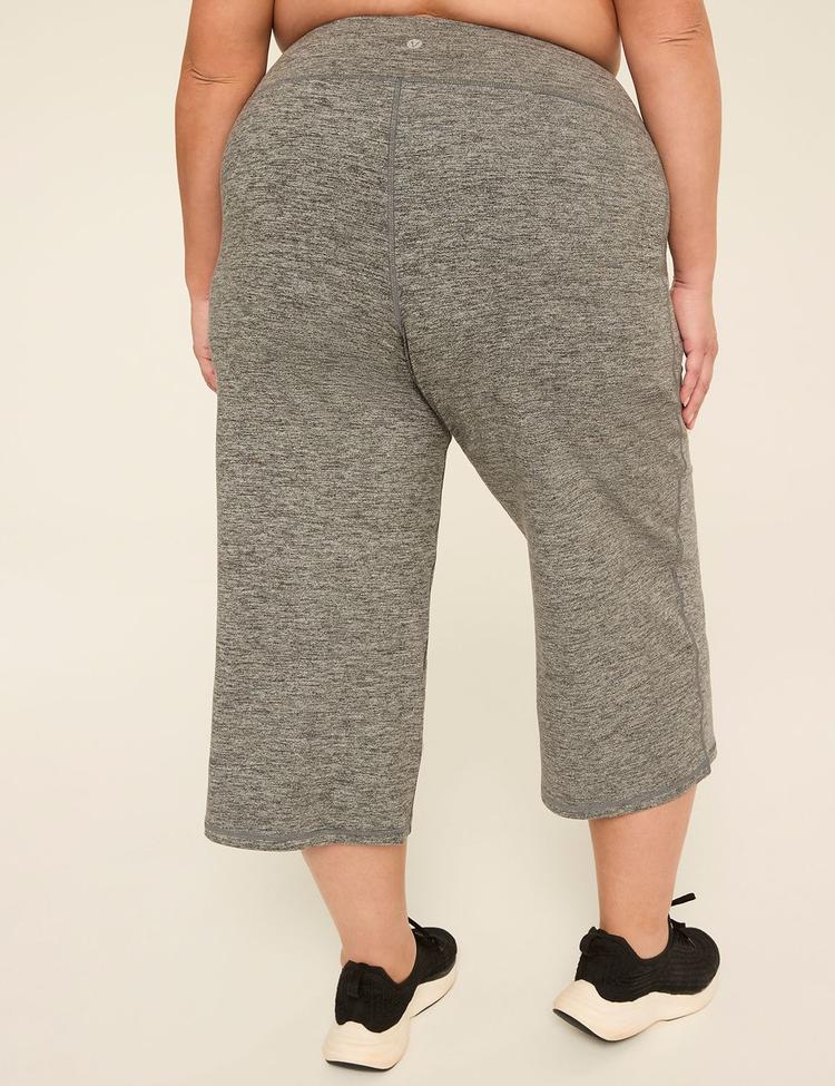 Experience all-day comfort and effortless style with these Plus Size LIVI High-Rise Livi Soft Marled Wide Leg Crop pants. Crafted from a buttery-soft, lightweight fabric blend of polyester and spandex, these cropped leggings feature a high-rise flat-front waistband that stays securely in place. The marled black and white pattern adds subtle texture, while the wide-leg silhouette and fitted cut from hip to mid-calf provide a flattering second-skin fit with freedom of movement. Functional side pockets enhance practicality, making these pants perfect for casual outings, workouts, or lounging. Embrace versatile comfort and modern sporty chic with this must-have activewear staple.