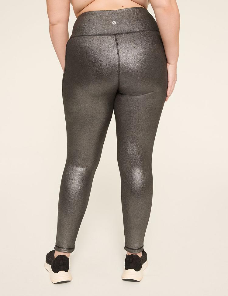 Meet your new everyday essential that moves with you. These LIVI High-Rise leggings in a sleek black shine contour your curves from hip to ankle with a second-skin, fitted silhouette. Crafted in buttery-soft LIVI Soft Shine fabric—80% recycled polyester with 20% spandex—the pair stretches in four directions for total freedom, while a wide, flat waistband stays in place without digging in. Seamless pockets on each thigh add practical flair. Designed for curves, these 7/8 leggings pair perfectly with oversized tees, crop tops, or a supportive gym top for workouts, commutes, or weekend runs. Effortless polish meets everyday performance.