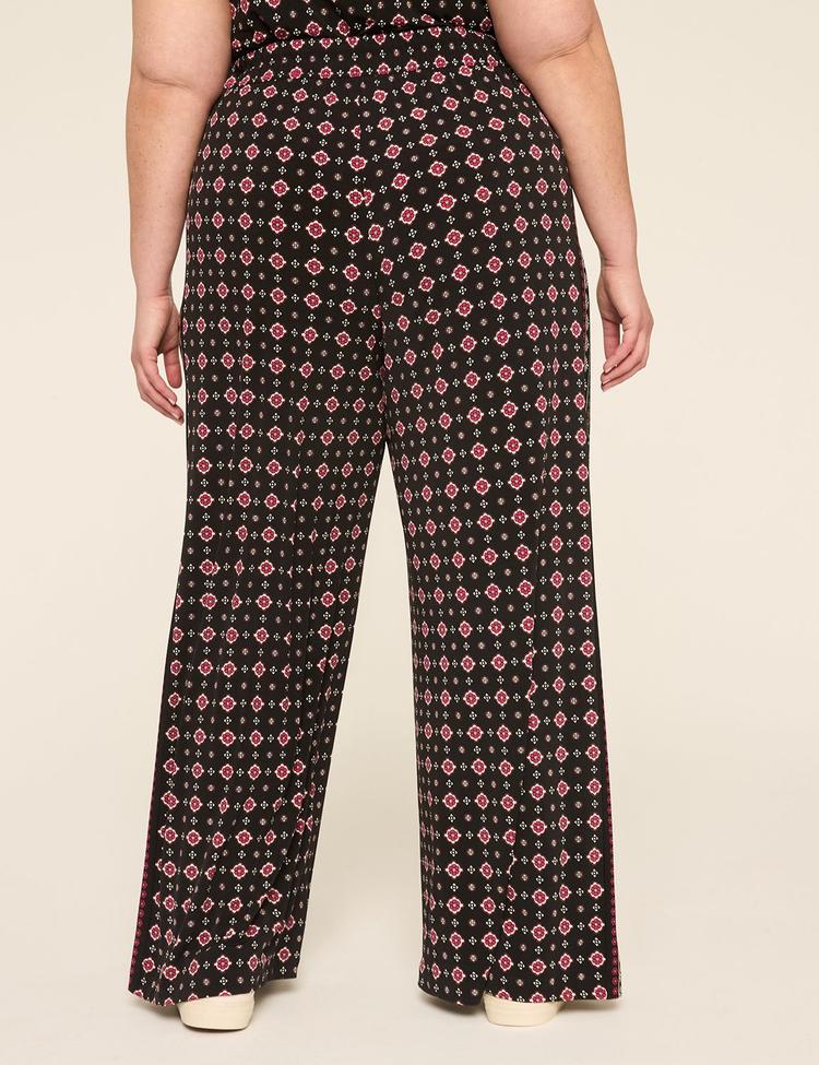 Available in Plus Size We meticulously designed this pant to offer perfect fit with endless ease - from the pull-on, cinch-ready waist to the Matte Jersey fabric. FIT: Covered elastic waistband with drawstring Leg Shape: Wide Leg. Relaxed and easy wide leg opening from hip to hem. Inseam: Petite: 26", Short: 27", Regular: 29", Long: 32" Rise: Mid. Hits below natural waist. FABRIC: Matte Jersey. Silky, soft and stretchy, a true wonder of a fabric for all-day polished comfort. High stretch, high drape Machine Wash 95% Polyester/5% Spandex FEATURES: Covered elastic waistband with drawcord Two pockets Item Number #412436 Imported Plus Size Pant ". Plus Size Matte Jersey Pull-On Wide Leg Pants, in Black Geo, 14/16, Women's, Lane Bryant