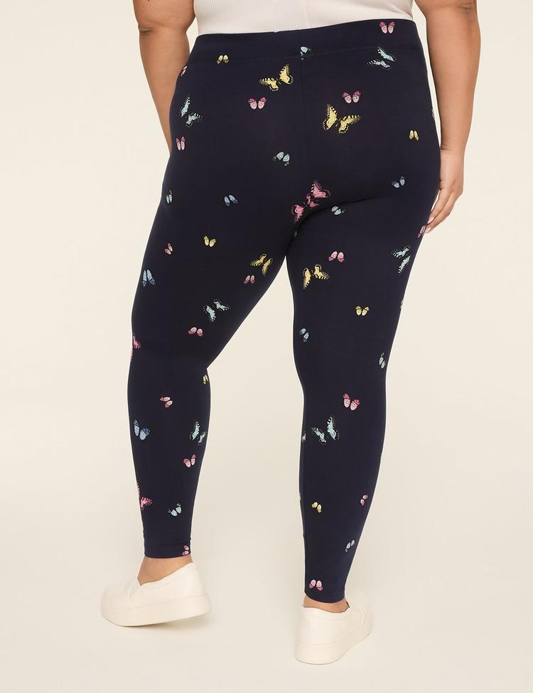 Embrace comfort and playful style with these Plus Size Printed Layering Fashion Leggings by Lane Bryant. Crafted from a breathable and stretchy cotton-elastane blend, these full-length leggings feature a mood-lifting all-over Victorian butterfly print on a dark navy blue base. Designed with a covered elastic waistband for an easy pull-on fit, they offer a flattering regular waist rise and a sleek, fitted silhouette. Ideal for layering under dresses, skirts, or tunics, these leggings blend everyday ease with vibrant charm. Perfect for casual outings, travel, or lounging, they bring softness and style to your wardrobe essentials.