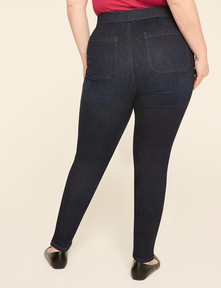Available in Plus Size A fresh jegging to add to your denim lineup - we added classic nautical elements and pull-on ease to our legendary jeans for a pair that works every day of the week. FIT: Pull-On. Pull-on, comfort stretch waistband that's made to move with you. Leg Shape: Jegging. Super slim, legging-like fit from hip to hem. Inseam: Short: 27", Regular: 29", Long: 32" Rise: High. Hits at natural waist for extra tummy coverage. FEATURES: Two faux front pockets, two true back pockets Non-functional button detailing FABRIC: Classic denim. Our premium, hand-selected denim is smooth to the skin and crafted with unbeatable bounces-back recovery that feels like it was made just for you, with stretch levels from vintage-inspired rigid to high stretch. Super Stretch. Perfectly comfy, perfectly stretches-with-your-every-move denim. Machine Wash 92% Cotton, 6% Polyester, 2% Spandex WHY OUR DENIM IS THE BEST FOR CURVES: Co-created with you, your requests and feedback fuel our design! Magic behind the seams - best-in-class tech & solutions for the perfect fit, every single time. A variety of lengths, washes and stretch levels so every pair feels like it was made just for you. Item Number #412031 Imported Plus Size Denim ". Plus Size Pull-On High-Rise Sailor Jegging, in Dark Denim, 26, Women's, Lane Bryant