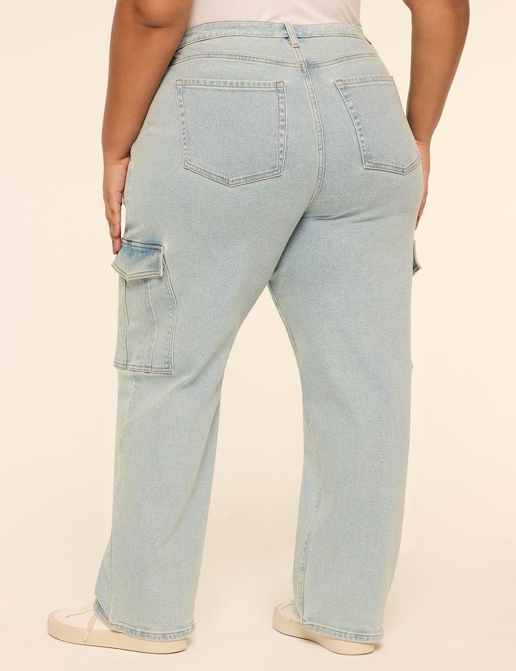 Experience laid-back comfort and timeless style with these relaxed mid-rise straight cargo jeans designed specifically for curvy figures. Crafted from premium light denim with a soft, stretchable fabric blend, these jeans offer a flattering boyfriend fit that is relaxed from hip to knee with a slight taper at the calf. Featuring functional cargo pockets on the sides, strategically placed back pockets for a flattering booty lift, and a classic belted waistband with button and zip fly closure, they combine practicality with effortless cool. The rolled cuffs add a casual finishing touch, making these jeans perfect for everyday wear or casual outings. Embrace a versatile staple that moves with you and feels custom-made for your shape.