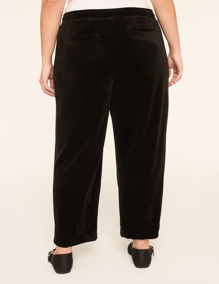 Step into plush, everyday luxury with Lane Bryant’s Rib Velour Pull-On Curved Ankle Pant. Crafted in soft, stretchable black velour, this pant delivers an effortlessly chic feel from morning errands to evening comfort. The mid-rise waist with a cinching drawstring creates a customizable, relaxed fit that tapers gracefully to a curved ankle. Functional pockets add practical polish to the luxe fabric, making it easy to carry essentials without bulk. Pair with a luxe knit for lounge-to-street appeal, or elevate with a satin blouse for a polished, versatile look that flatters a curvy silhouette.