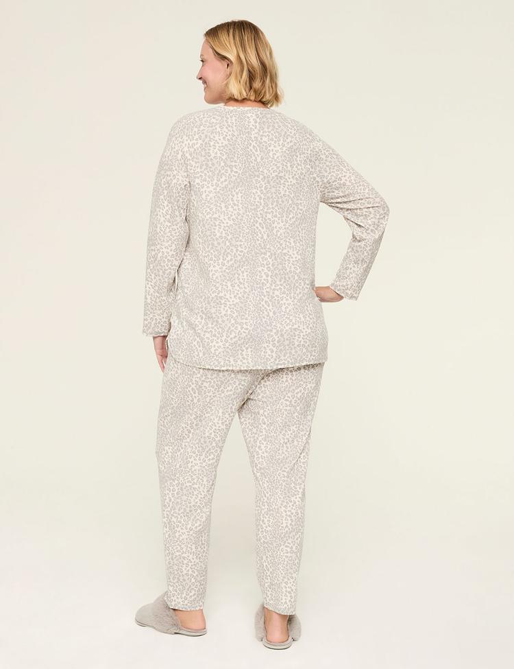 Wrap yourself in cozy luxury with a thermal cotton pajama set that blends comfort and subtle style. The tunic features a relaxed, breathable waffle-knit fabric in a soft beige leopard animal print, finished with a flattering Henley neck and button placket. Paired with a straight-leg pant, this set offers a ribbed, covered elastic waistband and full-length silhouette for effortless evenings at home. Perfect for chilly months, its plus-size, relaxed fit makes lounging feel chic, warm, and endlessly wearable—whether binge-watching, nestling in bed, or enjoying a lazy Sunday.