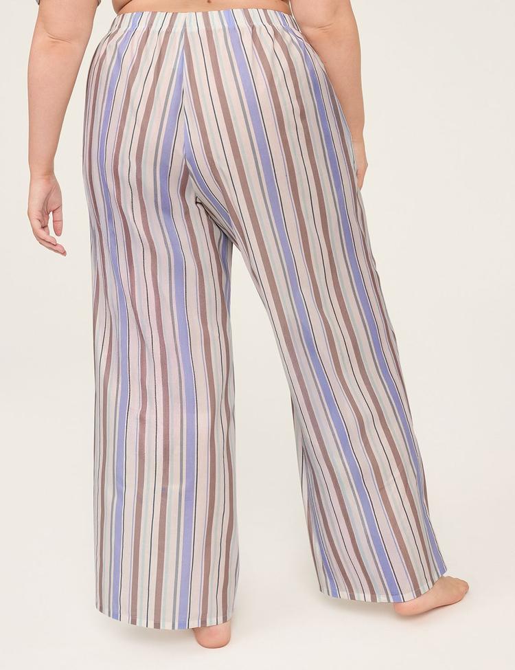 Experience relaxed elegance with these plus size woven poplin wide leg pants, featuring a soothing striped pattern in muted tones of beige, dusty blue, and dusty rose. Crafted from lightweight, breathable poplin fabric, they offer all-day comfort with a loose fit and a regular waist rise enhanced by an elasticated waistband. The full-length wide-leg silhouette flows effortlessly, making them perfect for casual outings, lounging, or everyday wear. These versatile pants bring a modern, minimalist charm to your wardrobe, blending comfort with style for a laid-back yet polished look.