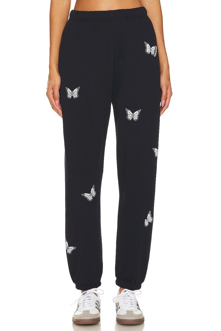 Meet your new go-to at-home and street-ready essential. The Chantria Sweatpants from Lauren Moshi are cut in deep black cotton with a soft French terry lining for feather-light warmth, finished with a playful butterfly print that travels along the legs. The pull-on design sits at a comfortable rise with an elastic waistband and cuffed ankles for a relaxed, tapered silhouette. Side seam pockets add everyday practicality, keeping essentials close. Perfect for casual weekends, travel days, or quick errands, these joggers fuse laid-back luxury with whimsical charm—an effortless statement piece you’ll reach for again and again.