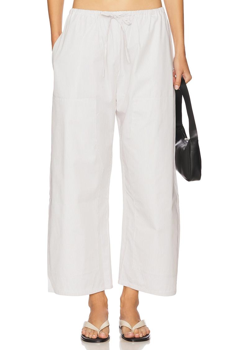 Effortless coastal-chic meets everyday practicality in these Yoshi Carpenter Pants. Crafted from a breathable cotton-lyocell poplin, the relaxed, wide-leg silhouette drapes loosely from an elasticized waist with a drawstring for adjustable comfort. Clean white and minimal finish keep the look versatile—from sunshine Saturdays to travel days. Front side slit pockets and back patch pockets add effortless utility, while the ankle-grazing length creates a modern, cropped line that pairs with sandals or slides. Dress them up with a silky blouse or keep them easy with a tee—these pants are your go-to for relaxed polish and all-day ease.