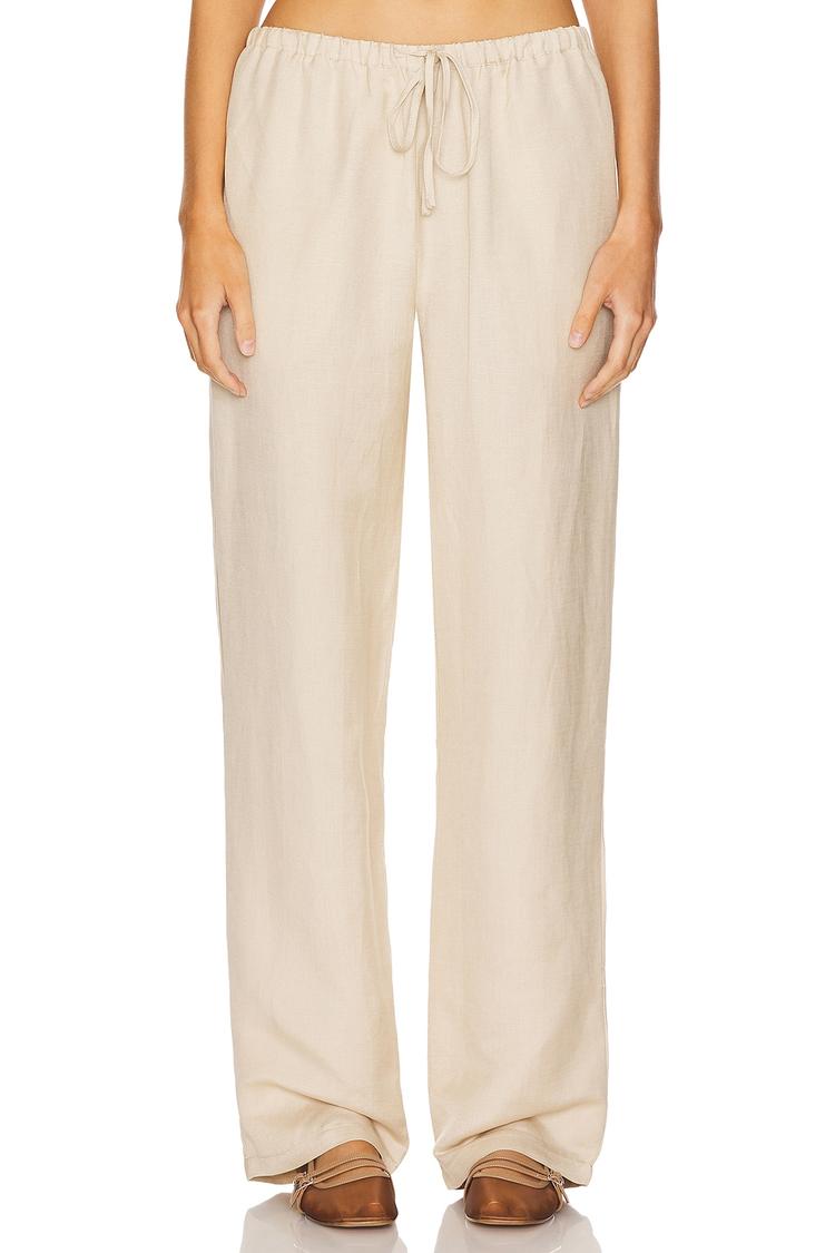 Elevate your everyday with these Ride With Me Pants in a sunwashed cream. The relaxed Palazzo silhouette drapes fluidly from an elastic waistband with a practical drawstring, delivering all‑day comfort. Crafted from a breathable linen‑viscose blend (55% linen, 45% viscose), they offer a soft, matte finish and airy movement. Side pockets add everyday utility, while the full‑length, wide leg pairs effortlessly with a breezy blouse and sandals for vacation days or weekend errands. Effortless, versatile and timeless, they transition from morning to night with minimal effort.