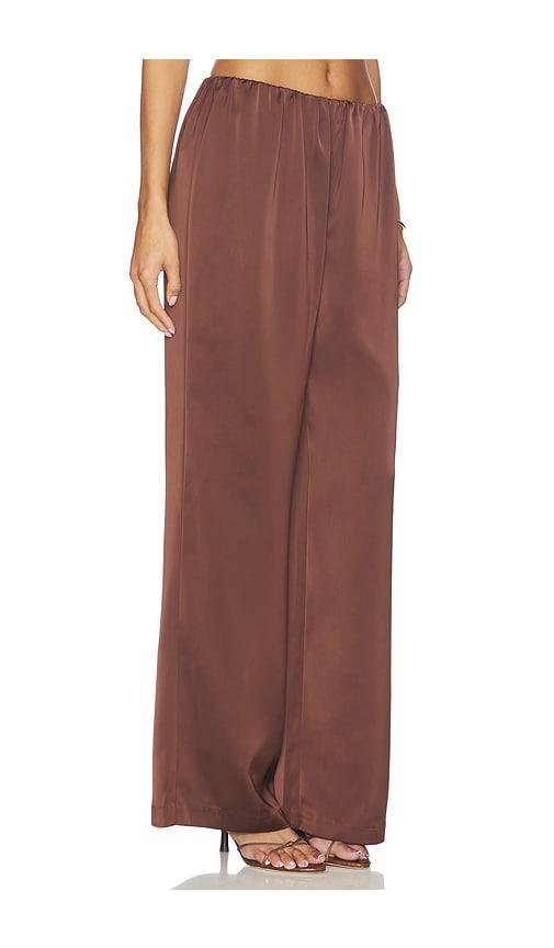 LOVERS AND FRIENDS ALETTE SATIN PANTS IN CHOCOLATE.