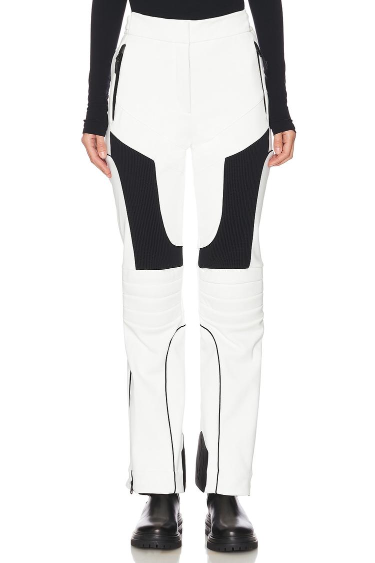 sleek white ski pants with black paneling