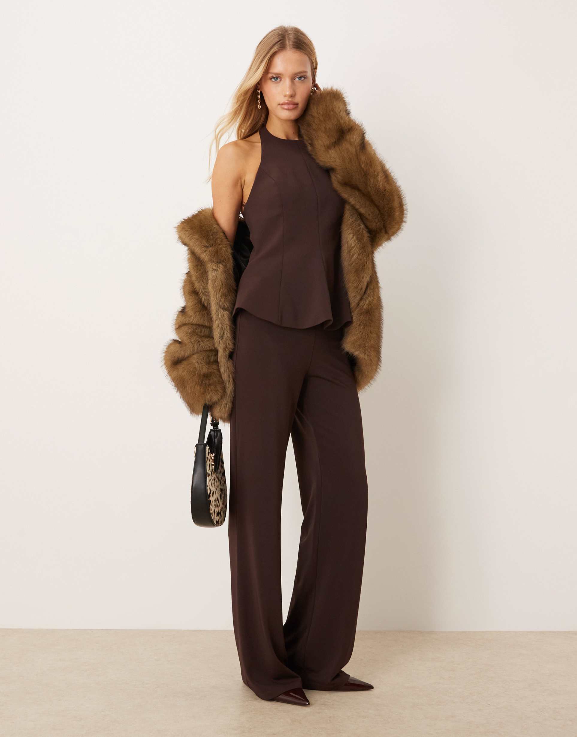 MANGO STRAIGHT LEG PANTS IN BROWN - PART OF A SET